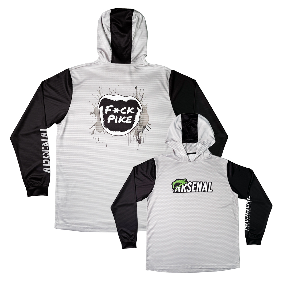 All artwork is fully dye sublimated into the fabric to prevent cracking, peeling, or fading. Each hoodie features a custom pattern inlay inside the hood, with clean Arsenal branding on the front, arm, and back. The center back carries the signature F*ck Pike mark, adding attitude without sacrificing technical function.